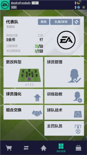 5、在球队管理界面,你可以干很多事,比如调整阵型、换人、给球员强化升级,都在这儿。