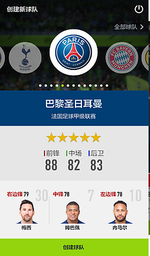 3、然后就是关键环节了,创建球队。不同的俱乐部给的初始球员不一样,前期能打的比赛也不同。选好了就点下面的创建球队按钮。