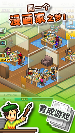 漫画道场物语是一款轻松有趣的模拟经营游戏,主要是从一位刚到城市追梦的新人开始,慢慢一步步朝漫画家目标前进,前面要先在小房间里构思作品,再外出取材找灵感,平时也能通过打工和学习慢慢提升画画能力,随着经验越来越多,作品人气也会慢慢提高,后面还有机会把漫画发展成小说、动画甚至电影,玩起来很像在看一位漫画家慢慢成长的过程。
