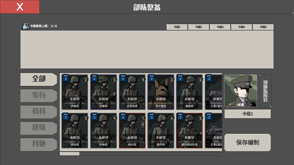 2、这里头能选指挥官,每个指挥官给的点数不一样。你就根据这点数,往队伍里塞兵。兵种多得一批,慢慢解锁。一共能存五套方案,打不同图用不同配置,懂的都懂。