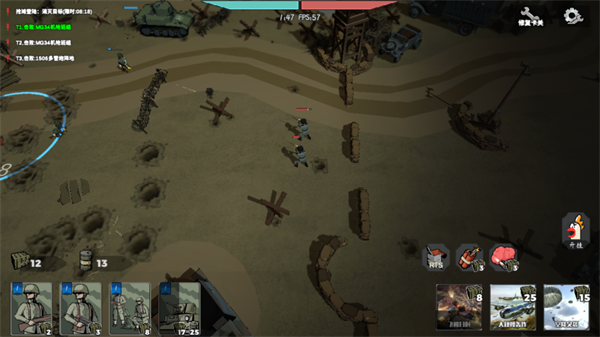 5、让你的人进战壕找掩护,这是基本操作。敌人只要进了你士兵的射程,他们自己就会开火,不用你一个个点。后面的战役就靠你自己发挥了。