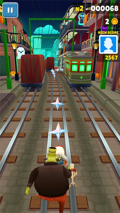 1.地铁跑酷锅铲金币版,说白了就是个加了料的特别版,画风还是那个味儿,浓浓的美式街头感。这个版本最大的特点就是道具库大更新,不管是角色皮肤还是局内用的磁铁、飞行器,都塞了不少新东西。玩法上没啥颠覆性的改动,老玩家闭着眼都能玩。核心还是满地图捡金币,然后拿这些金币去升级你的角色,买更炫的滑板,解锁更强的道具。操作依旧是上蹿下跳、左右横挪,躲开各种障碍和飞驰而来的火车。当然,那些经典道具的加入,能让你在跑酷时操作更丝滑,刷分刷金币也更轻松。