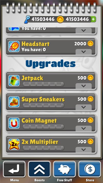 2.不吹不黑,地铁跑酷这游戏除了刺激,确实能练练你的反应速度和手眼协调能力。而且看着自己辛辛苦苦(或者说轻轻松松)攒下的金币把角色属性拉满,那种成就感是实打实的。这个版本里还加了些像隐身衣之类的新鲜玩意儿,让你能在隧道里横着走,直接无视障碍物。这些新道具确实给游戏加了不少乐子,让整个过程没那么单调。讲真,UI设计稍微有点复古了,但功能确实没毛病。想爽一把的朋友可以下来试试。