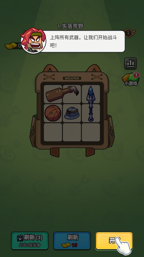 4、把你最好的家伙事儿都摆上去,然后点开始战斗,让它们自己打去吧。