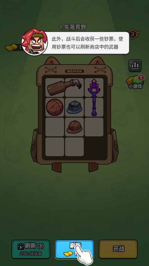 2、商店里的武器不满意?点那个刷新按钮,换一批新的给你挑。