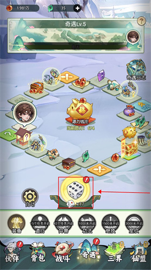 2、主线任务推图能拿到一种叫奇遇骰子的玩意儿。点了就在大富翁地图上走,捡各种材料,要是踩到升级格子上,你的奇遇等级就提上去了。