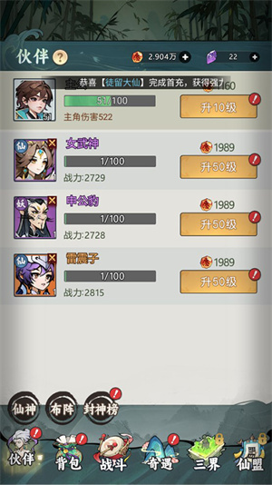 4、养成系统搞了个封神修炼的进阶路线。这游戏挺吃阵容搭配和战术的,有时候脑子比氪金好用,策略对了就能以弱胜强。