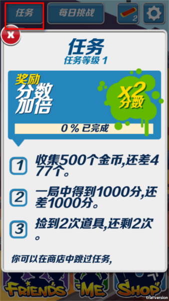3、主界面点那个‘任务’按钮,能看到具体要求。把这些任务做了,分数能翻倍,刷分党必备。