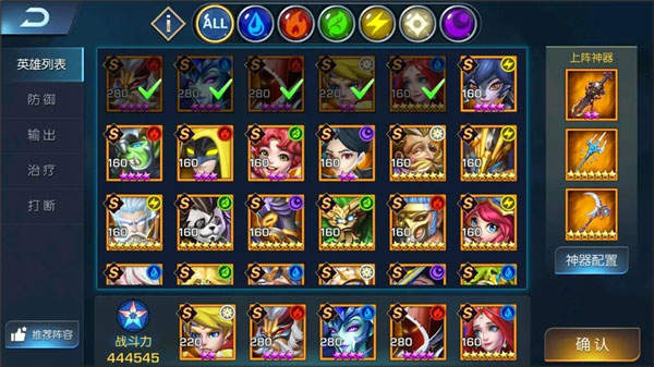 3、除了凑光环,你养的英雄多了,元素力量攒够了,还能解锁个叫“神器”的系统。这玩意儿就是个大杀器,每场战斗都能给你提供超强助力,后期必备。