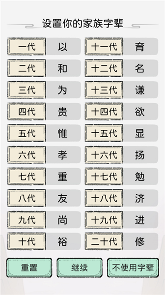 2、设置家族字辈,可用于后续角色命名与家族传承