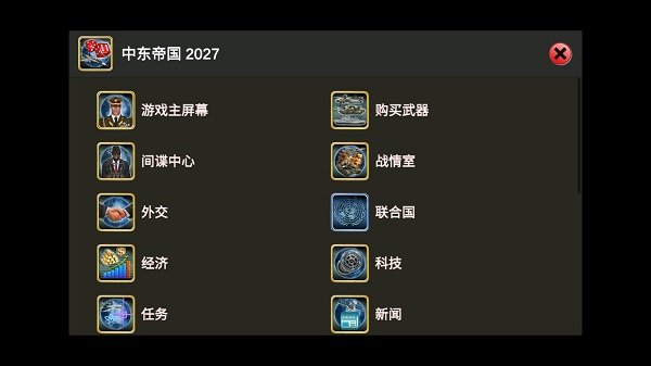 3、你随便点上面信息栏里任何一个图标或者数字,就会弹出新的操作菜单。想买武器、搞外交,甚至是用钱砸垮对手,都在这里操作。