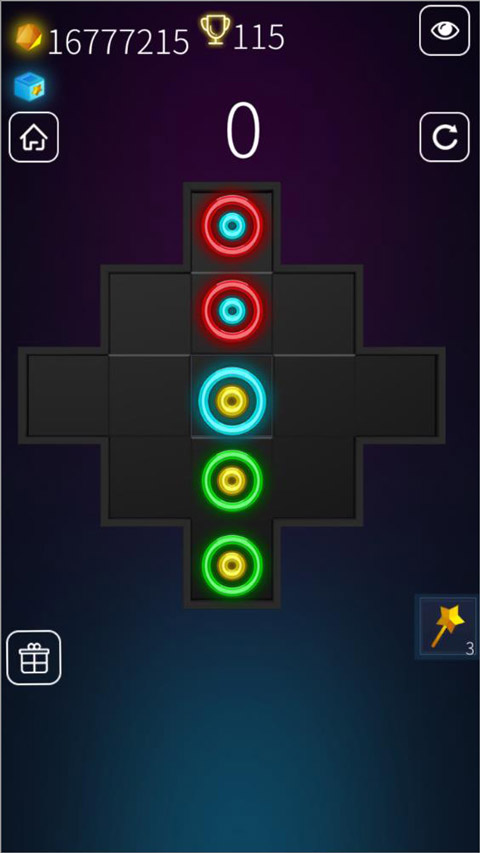 这游戏的规则得说清楚。圈圈可以大的套小的,这点跟颜色没关系。但消除的时候就只看颜色了,只要一条线上凑齐三个同色的圈圈,不管大小,直接“砰”一下就没了。