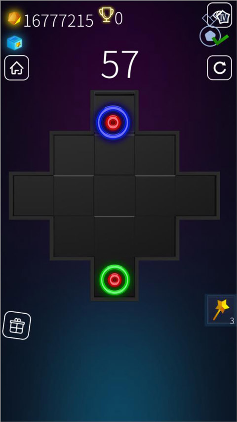 经典模式用的是个九宫格的棋盘,给你的圈圈有大、中、小三种尺寸。至于其他模式,棋盘就不是方方正正的了,会根据模式主题设计成各种奇奇怪怪的图形。