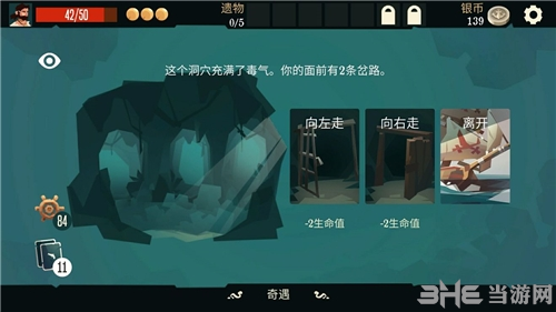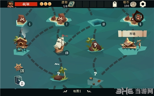 3、在海上漂的时候,你会碰到各种奇遇,完成任务或者打赢了就能拿到银币、卡牌、遗物这些奖励。有了这些,你才能去升级卡牌、买新东西,一步步变强。