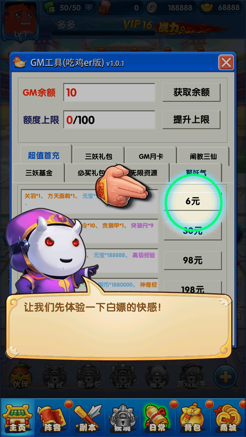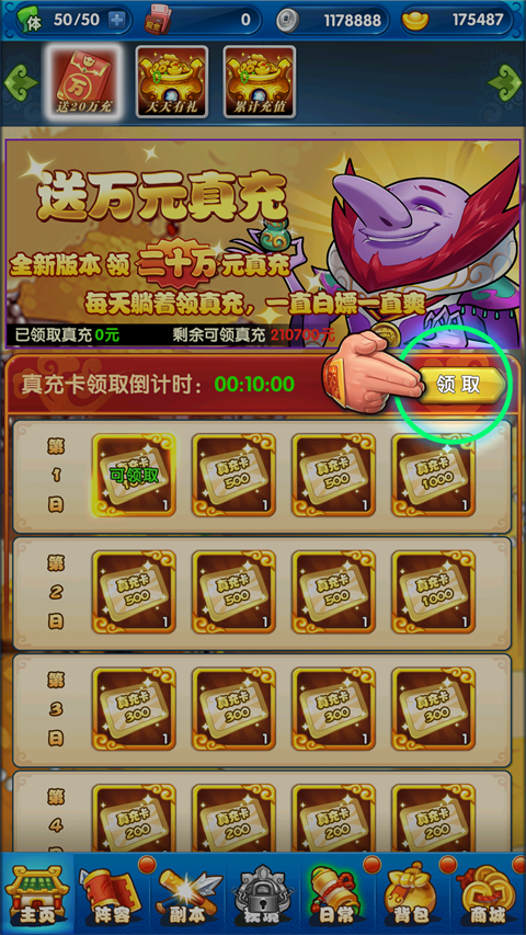 3、所有的充值礼包,你都可以用送的真充卡直接拿下,一分钱都不用掏。