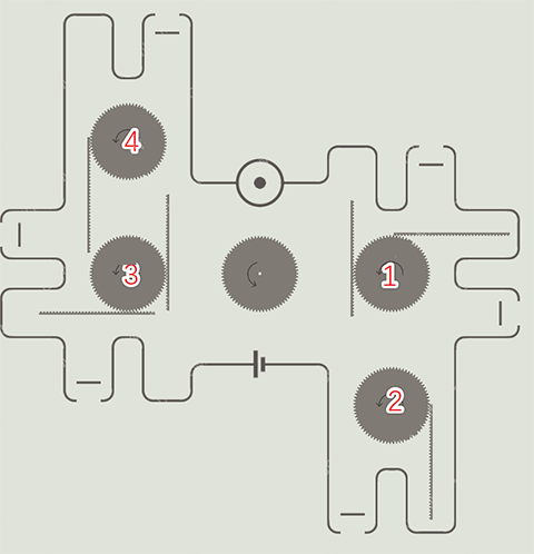 9、先点上下(或者左右)那对齿轮,等齿条走到头了,再点另外两个。