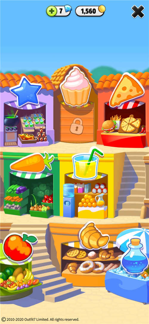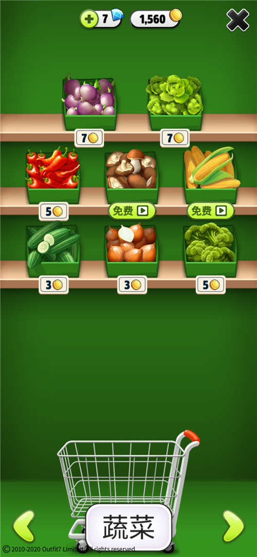 2、点开冰箱就能看到食物商店了,里面分了八个货架,卖的东西种类都不一样。有些高级货架要等级够了才给你开放。