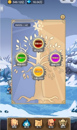 1.行了,说正事。《小小勇者》的本质是一款放置养成类游戏,属于可以长时间自动进行的类型,其核心玩法由推进关卡、提升等级和获取装备三部分构成。。玩到后面还有神树、觉醒、天梯这些系统等着你。