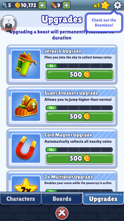 常见的道具有这么几个:火箭推进背包,能让你飞到天上去,无视所有障碍,还能顺路捡一大堆金币;超级运动鞋,能让你跑得更快,跳得更高;金币磁铁,顾名思义,帮你把周围的金币都吸过来;双倍积分,在一定时间内得分翻倍。这些道具都有时间限制,所以得看准时机用,别浪费了。
