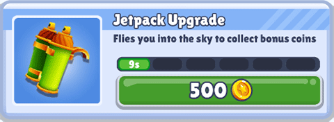 火箭推进包:这个道具只能在游戏里随机捡到,没法买。角色一碰到它,就会自动飞到电缆上,这时候所有障碍都跟你没关系,你只管看他自动收金币就行。这绝对是游戏里最爽、最给力的道具,没有之一。