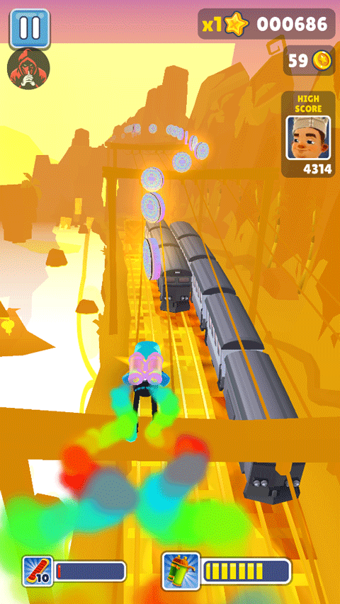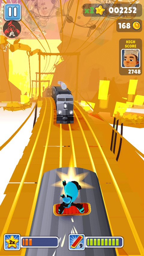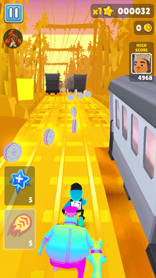 这游戏玩的就是个反应,跳、滑、躲,一刻都不能分心。稍微走神一下,脸撞火车上就直接GG了。