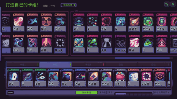 卡组构建这块,是这游戏跟其他幸存者like拉开差距的地方。有一说一,《史莱姆3K》加了套挺深的卡组系统,让游戏多了点策略性,也给了玩家更多瞎捣鼓的空间。你得去解锁、升级、搭配你的卡牌,整出一套由古怪武器和奇葩能力组成的军火库。每一局都能配出一套完全不同的杀戮装备,可玩性还不错。