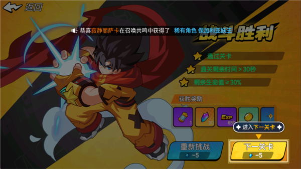 4、打赢了之后,系统会给你一堆奖励,领完就能解锁下一关,继续你的征途。大家看下面这张截图,就是胜利结算界面。