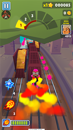 2、尽量在火车顶上跑,上面的视野比地面好太多,也更安全。而且金币的排列通常会引导你怎么在火车之间跳,跟着走就行。