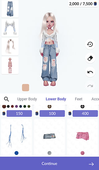 3、选中一件衣服后,有些是支持调色的,可以换成你喜欢的颜色。人物右边那俩箭头是撤销和重做,那个橡皮擦图标就是一键清空所有装扮,让你从头再来。