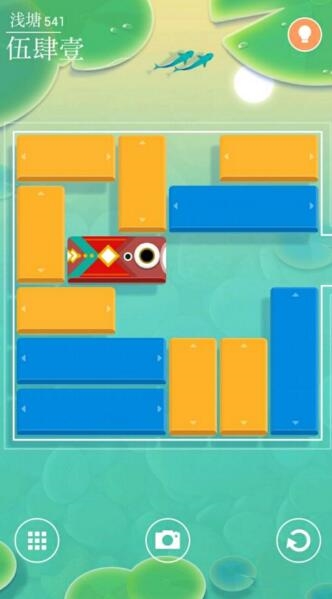 2、操作起来也没啥门槛,逻辑特别简单,上手巨快。虽说就是那么几块木头在小池塘里倒腾,但能玩出的花样还真不少,挺耐琢磨的。而且不管是鱼游过去那种灵动的劲儿,还是背景里时不时传来的几声蛙鸣,都让你觉得这不单单是在玩个解谜游戏,更像是在体验一种意境。