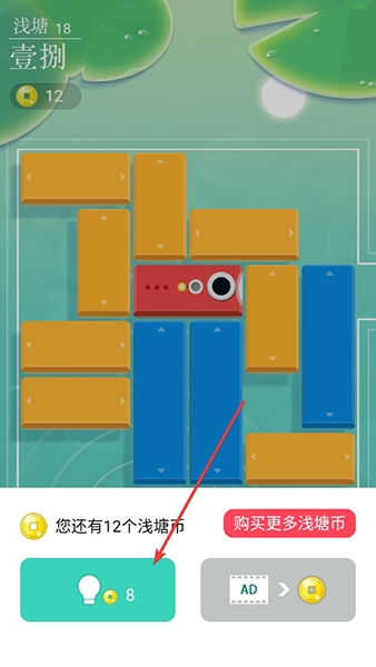 2、或者你也可以花钱消灾, 点击关卡下面那个灯泡按钮, 花8个币让系统自动给你演示一遍怎么过。
