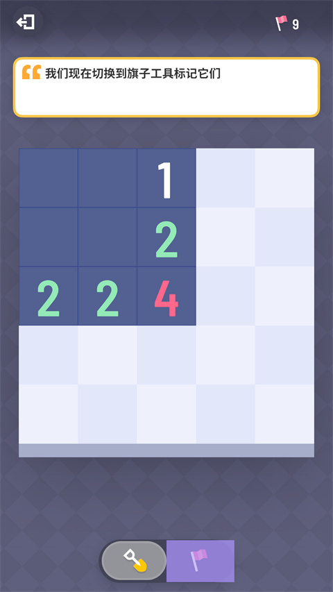 4、当未翻开的格子数量与数字一致时,可判断其为地雷