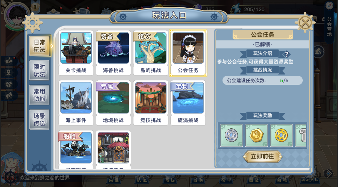 1、想进公会得满足两个条件之一:要么你主角等级干到8级,要么推图推到海军训练营的1-4-15关。达标之后,公会系统就解锁了。在主界面右下角找到那个“玩法入口”按钮,戳进去就能看到快捷入口了。