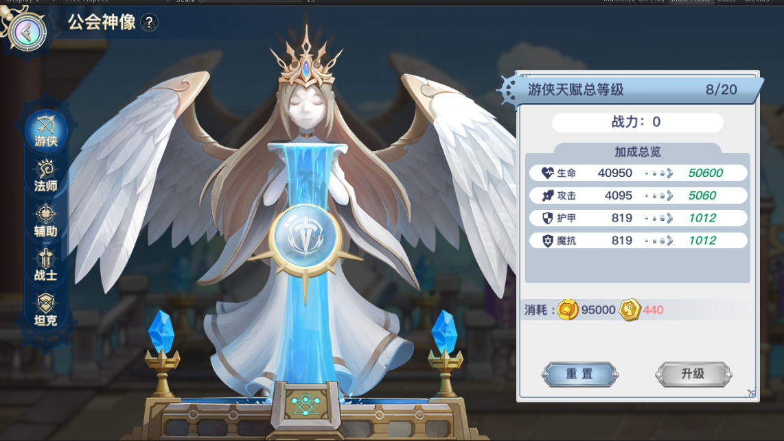 你得花金币和女神币才能给神像升级,不同职业对应不同神像。神像等级越高,这个职业所有英雄的属性加成就越多。女神币这玩意儿,主要靠做公会任务和打黑龙BOSS掉。