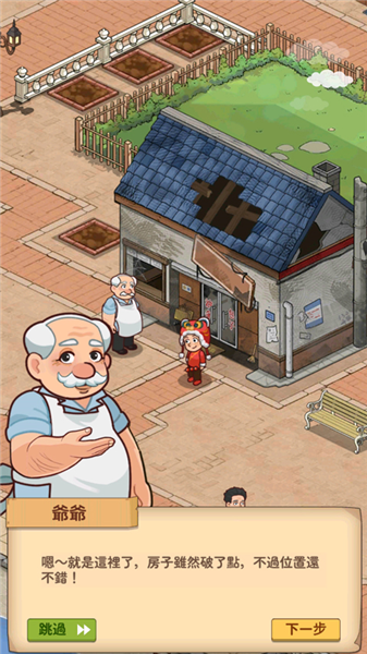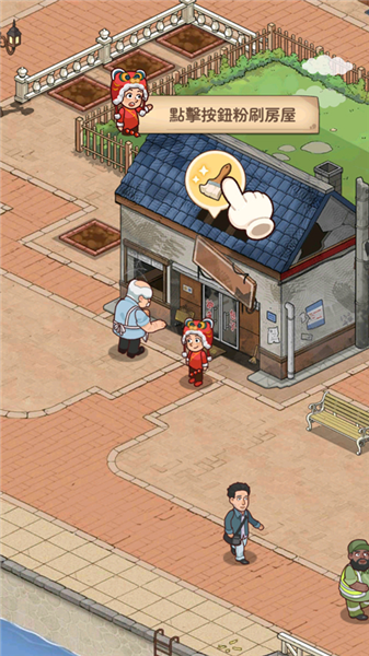 2、跟着箭头点就完事了,第一步是让你给这破房子刷个墙,换个新面貌。