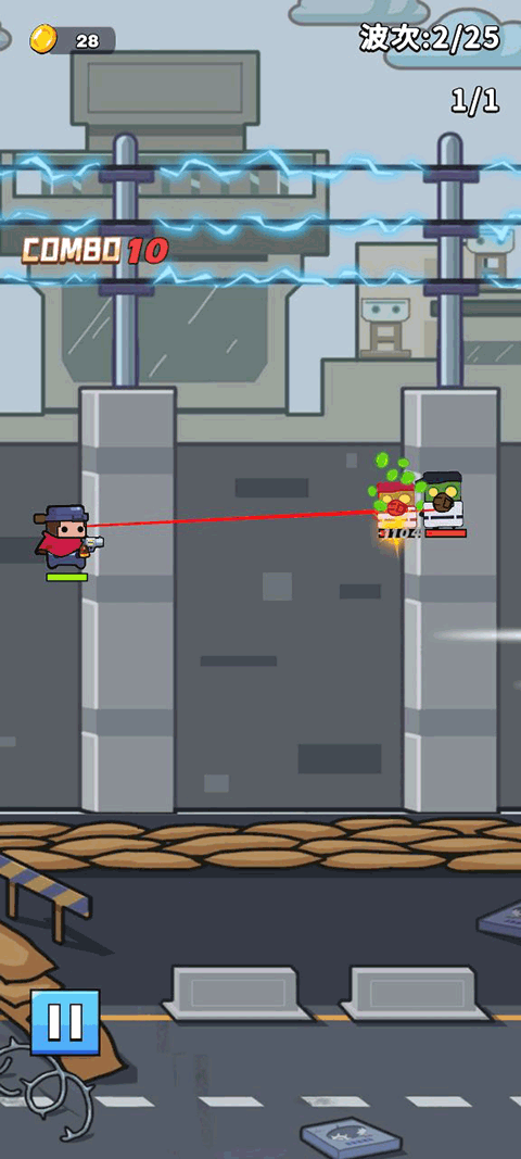 1、你需要一边锁定前方的目标,一边处理不断冲过来的杂兵,靠精准射击来完成任务。路上还会冒出路障、破墙、掉东西之类的玩意儿,必须靠风骚走位躲开,不然攻击节奏很容易被打断。