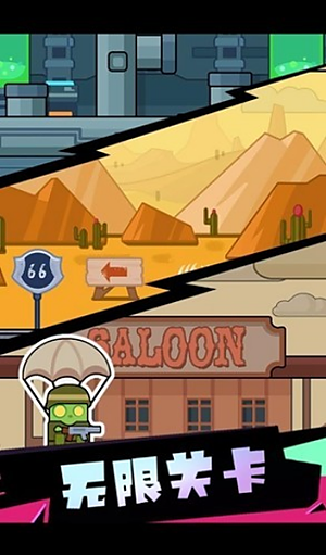 1、操作逻辑特别直接,屏幕上冒出来一堆敌人时,你只要点一下屏幕,角色就会跳一下顺便开一枪。子弹是自动往前飞的,你要做的就是靠这招把敌人全给清了。把一波敌人干翻就算过。具体咋操作,看下面这张图就明白了。