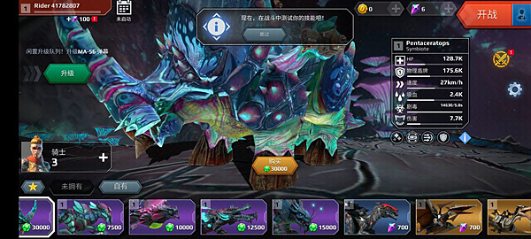 3、新手教程完成后,进入游戏主角面,玩家可以对自己的恐龙角色进行升级。