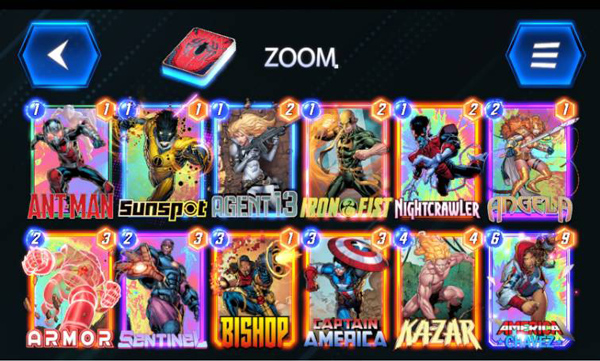 中文卡表: 13号特工、曼蒂斯、收藏家、电索、凯、哨兵、神奇先生、美国队长、月亮女孩、白皇后、恶魔恐龙、狂攻