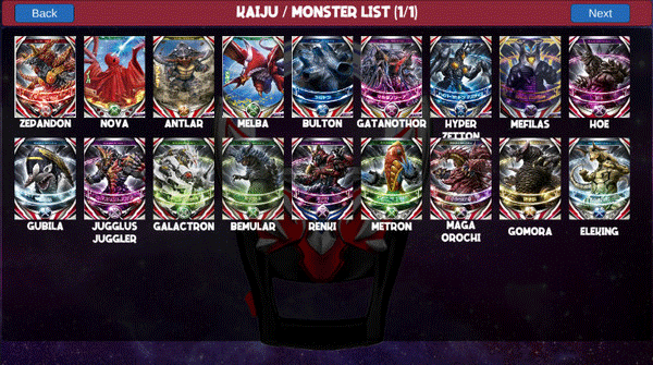 点左上角最左边那张卡,就能进奥特曼的卡牌库。讲真,里面的奥特曼数量还挺全的。
