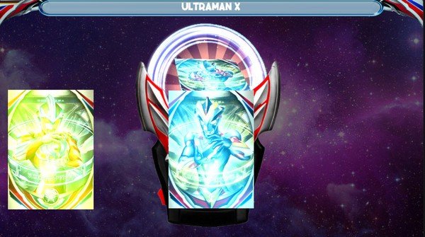 想玩三位一体?点击左上角卡组中央的那张卡片,即可将银河、维克特利、艾克斯与欧布本尊进行融合。。