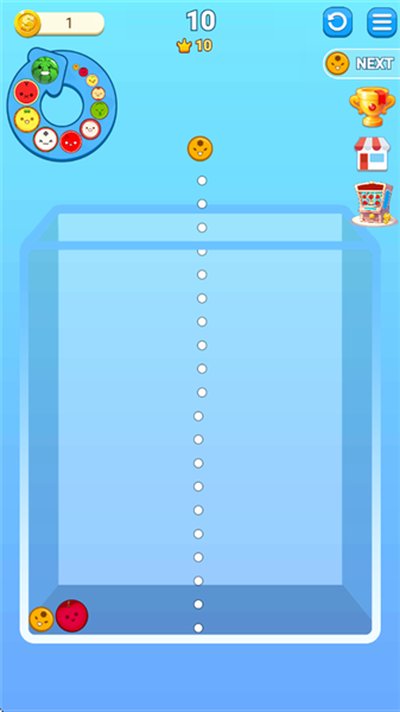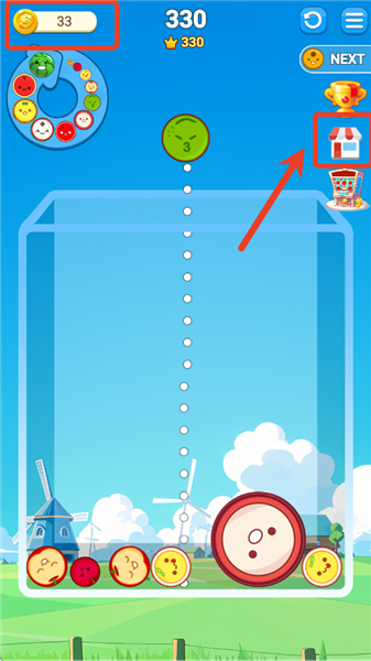 4、合成出来的水果越大,给的金币就越多。这金币没别的用,就是拿来换背景图的,让你的游戏界面看起来不那么单调。