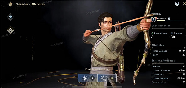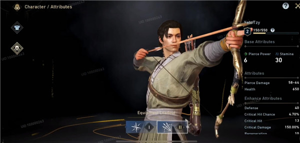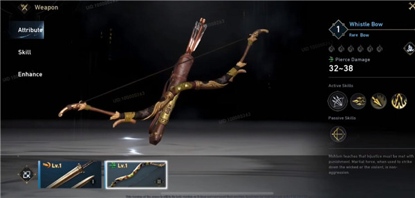 3、瞅瞅这个弓箭的展示,右边清清楚楚列着武器的各项数值,伤害、射速什么的,换装备前记得对比一下,别换了半天反而刮痧。