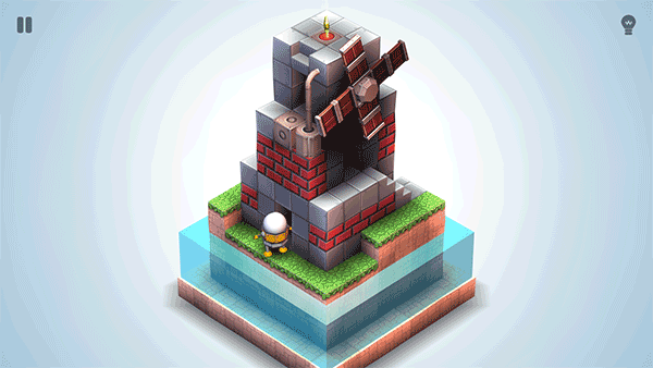 这游戏的画风确实挺讨喜的,主角机器人走起路来一晃一晃,看着就挺憨。整个美术风格有点像低配版的纪念碑谷,但味道是对的。大家可以看下面这张截图感受一下。