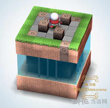 接着让它爬到风车下面的洞里,用同样的方法转动场景,出来后正好能站上那个可以移动的机关。