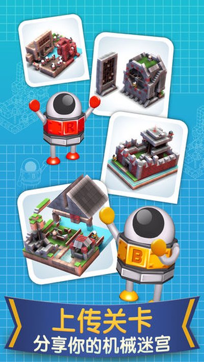 到这个叫《机械迷宫》的玩意儿,就是个3D解谜,主角是个大眼机器人,长得跟纪念碑谷里跑出来似的,蠢萌蠢萌的。你要做的就是控制它,在各种奇奇怪怪的立体迷宫里找路,最后摸到终点。游戏自带50个官方关卡。