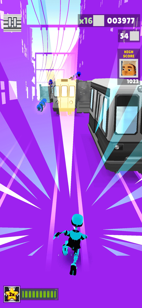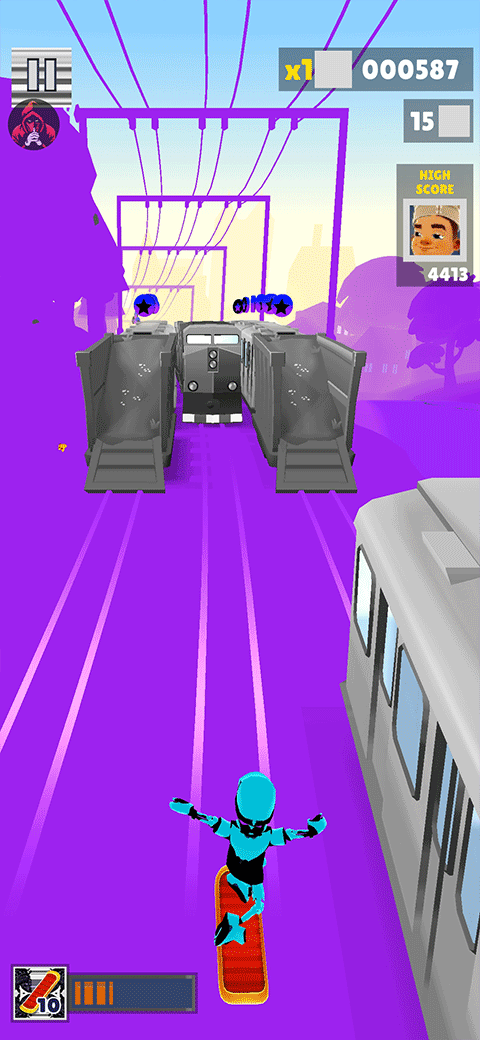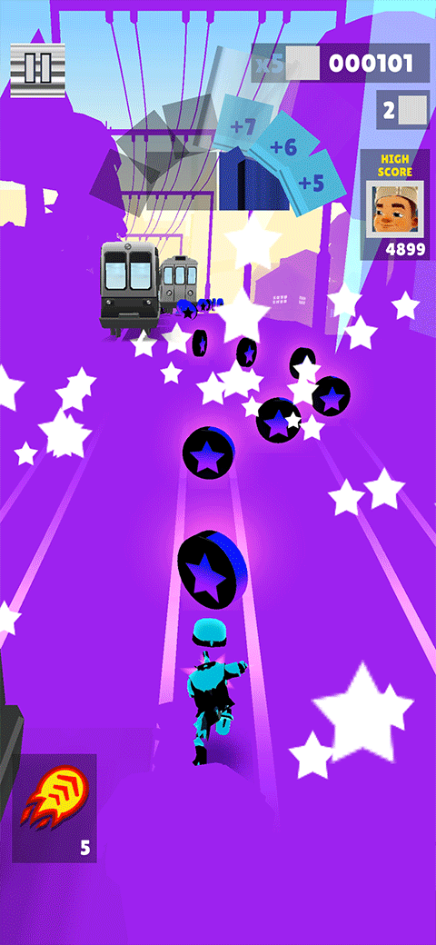此版本是由大神玩家魔改而来的版本,在角色形象与玩法细节上都进行了优化与调整,不仅还原了原版地铁跑酷玩法,还在其基础上对游戏地图、角色、金币进行了全新设计,地图主要以紫色系为主,除了火车、金币和道具为不同颜色外,其他一律为紫色,让游戏节奏更加流畅,视觉表现更加有趣。而由于障碍物和地图一样是紫色,导致其融入在了地图中,不仔细看甚至观察不到前往有障碍物,这也让玩家们的挑战更有难度和更加刺激。若想体验不一样风格的地铁跑酷,不妨来试试这款魔改版!
