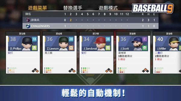 轮到你打击了,看准对面投过来的球,把你的打击指针移到球的落点上,然后果断按下“SWING”挥棒。打的位置不一样,球飞出去的方向也不同,什么高飞球地滚球,全看你操作。