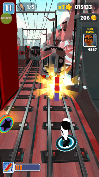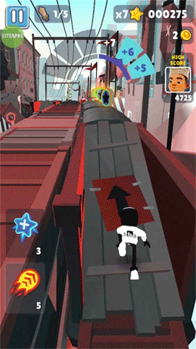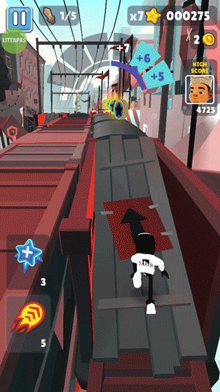 2、游戏里的关卡和挑战设计得挺丰富,各种障碍物、迎面开来的列车,还有后面追着不放的警察,让整个过程又刺激又上头。