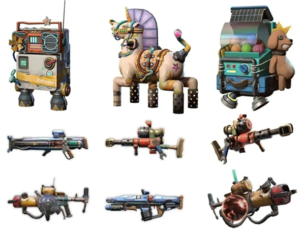 9、这些武器的外形设计也特别贴合废土这个主题, 看着都破破烂烂的, 像是随手捡来的零件拼凑的。比如用易拉罐做的手榴弹、长得像儿童水枪的激光器、还有用破收音机改装的飞行器, 挺有那味儿的。